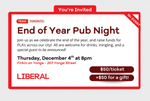 Regular ($50) Premium ($100)Join us as we celebrate the end of the year, and raise funds for PLA’s across our city! All are welcome for drinks, mingling, and more! We’re excited to host OLP President, Hon. Kathryn McGarry, and other special guests to be announced, right in the heart of our city!